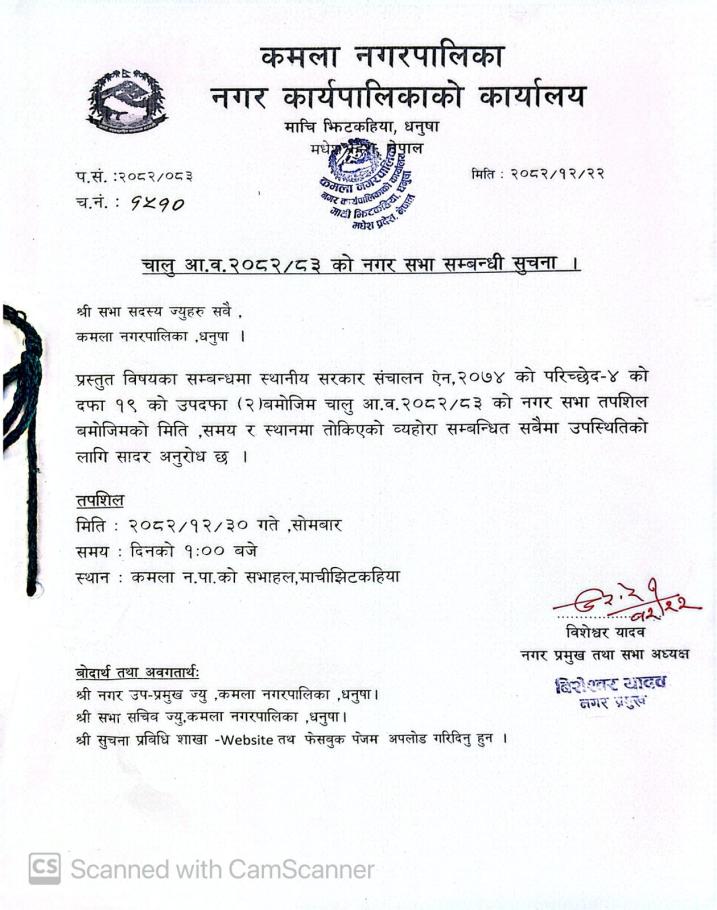 आ.व.२०८२/०८३ को नगरसभा सम्बन्धि सूचना तथा जानकारी !